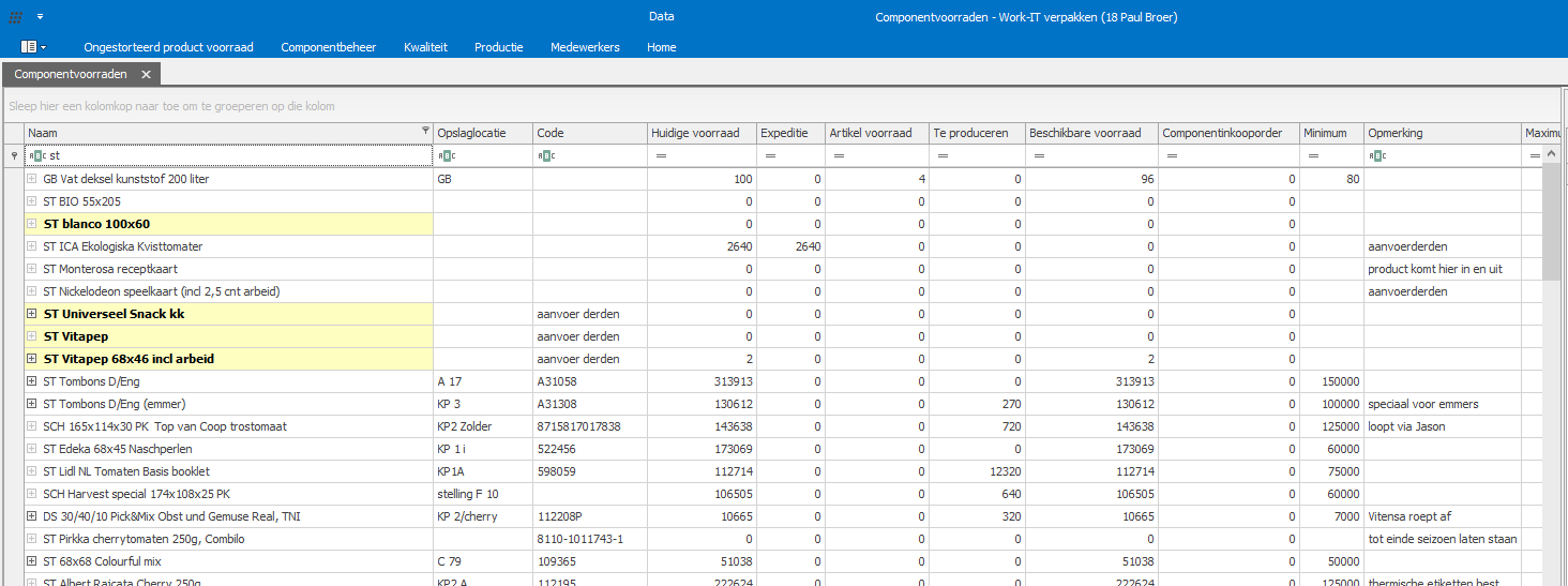 In het eerste voorbeeld werken we in de componentvoorraden en zoeken een component wat “st” bevat