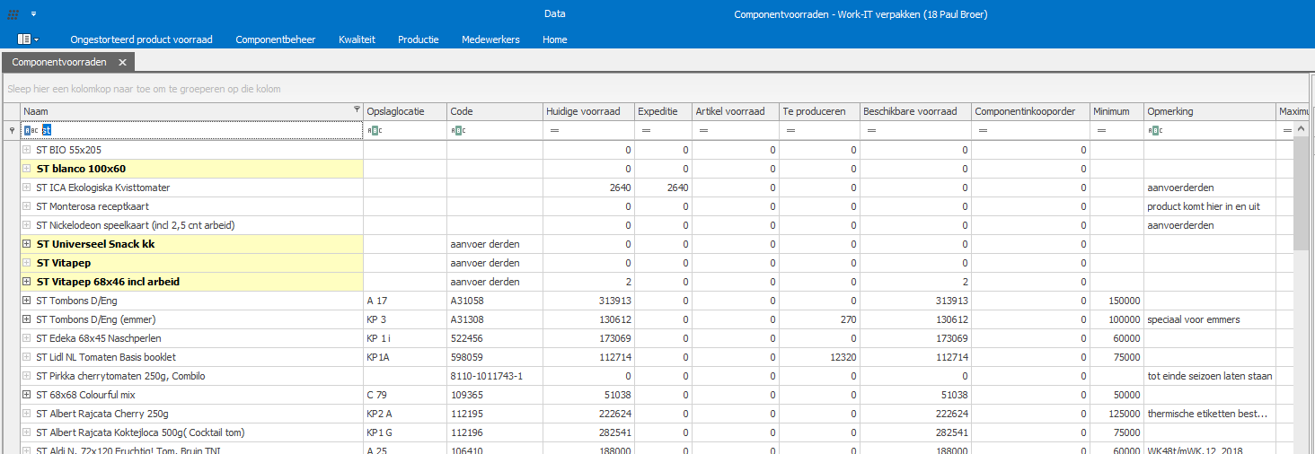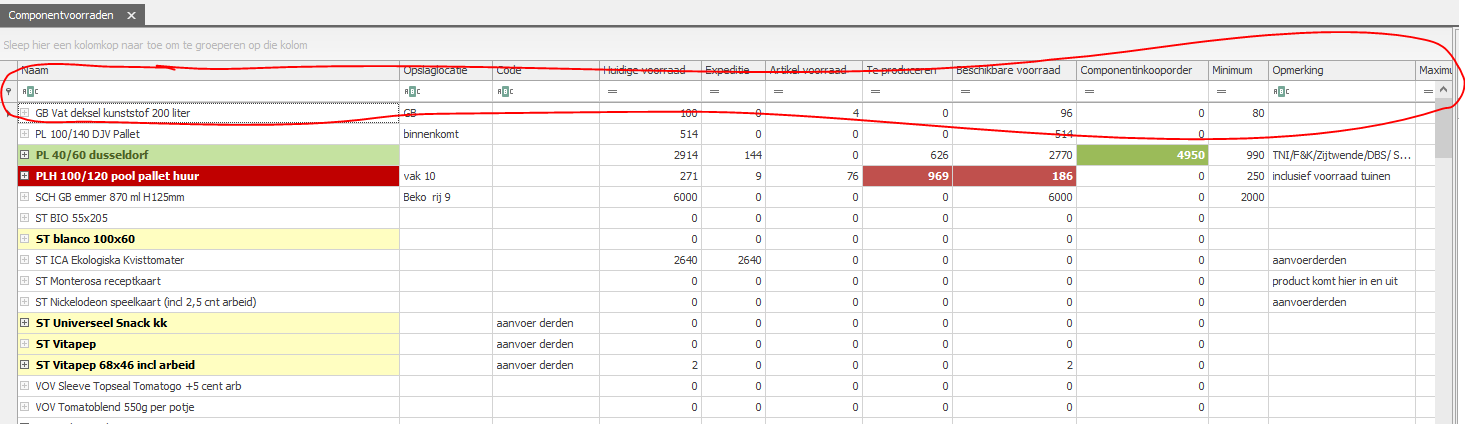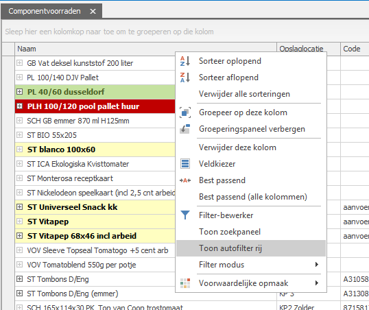 Binnen de werkbladen van Work IT verpakken kan je ook per kolom zoeken via de functie “autofilter rij