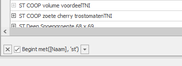 Er verschijnt een nieuwe rij bovenin. Links in elk veld staat een symbool hoe er in de kolom wordt gezocht.